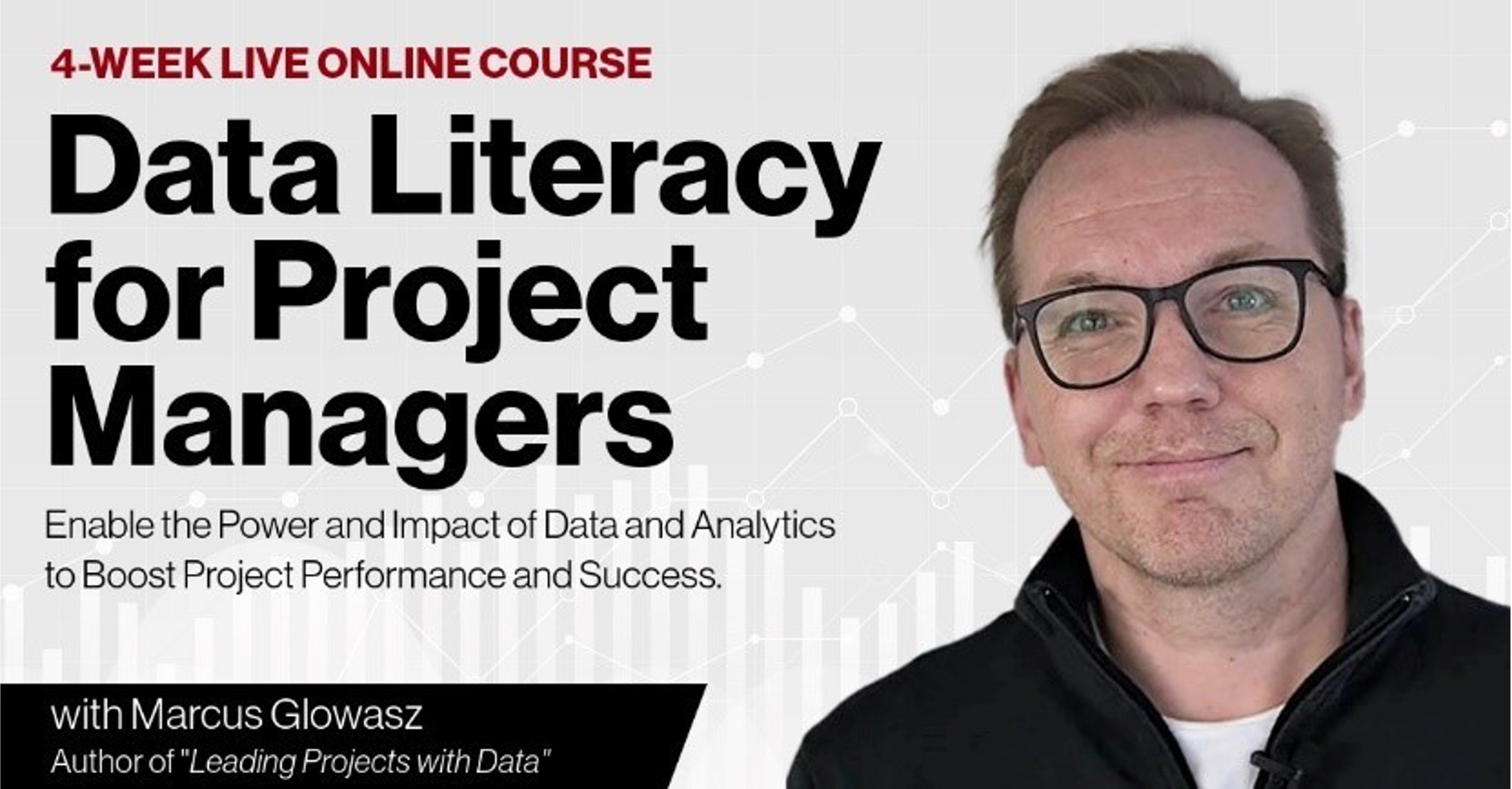 In dem 8-tägigen internationalen Online-Kurs „Data Literacy for Project Managers“ (für weitere Informationen: https://maven.com/marcus-glowasz/data-literacy-for-project-managers) über einen Zeitraum von 4 Wochen erlernst Du die wesentlichen Fähigkeiten und Techniken, mit Projektdaten effektiv zu arbeiten, diese zu analysieren, auszuwerten, zu interpretieren, und faktenbasierte Entscheidungen herbeizuführen, welche die Planungssicherheit und Effektivität von Projekten entscheidend erhöhen. Dieser nicht-technische Kurs ist auf die Bedürfnisse von Projektleitern bzw. den üblichen Herausforderungen in der Projektarbeit zugeschnitten und ist branchenunabhängig gestaltet.