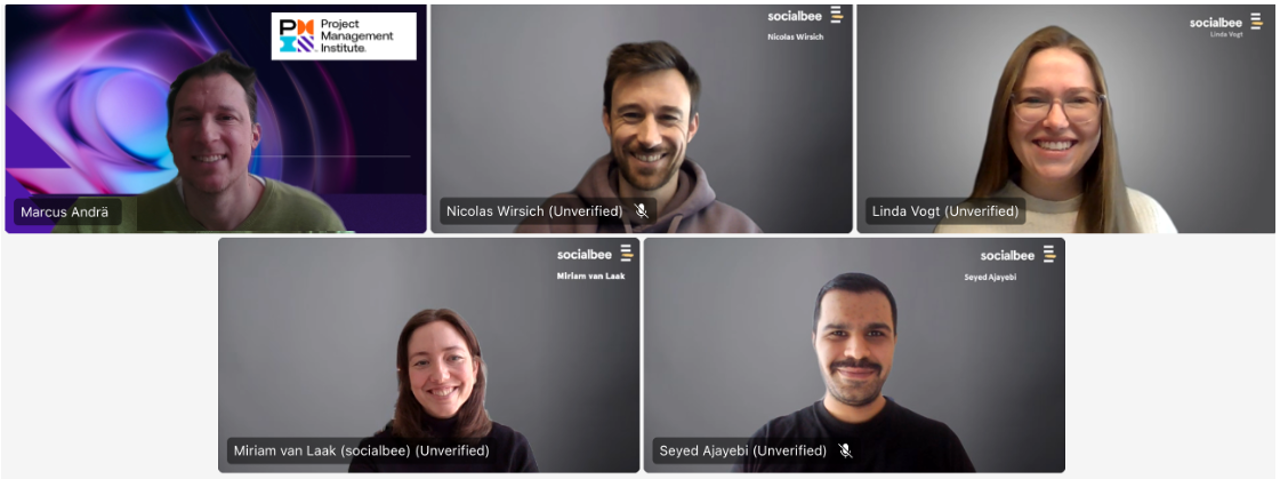 as vergangene Jahr war für das Team von socialbee ein Meilenstein im Projektmanagement. In enger Zusammenarbeit mit dem „Social Responsibility Programm“ des PMI Germany Chapter e. V., insbesondere mit dem Volunteer Marcus Andrä, konnte das Team, wertvolle Kenntnisse und Fähigkeiten erlangen, die die Arbeit in Projekten auf ein höheres Level gebracht haben. Miriam van Laak, Führungskraft bei socialbee, bedankte sich ganz herzlich für die Unterstützung und das Mentoring, durch die ihr Team sowohl fachlich als auch persönlich wachsen konnte.